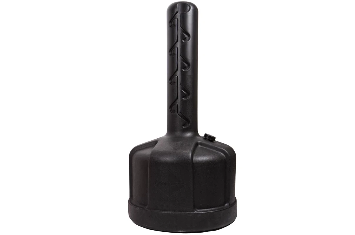 Elle peut être lestée de 110litres d’eau et éventuellement de sable en complément afin d’alourdir la base et de limiter l’effet dynamique.