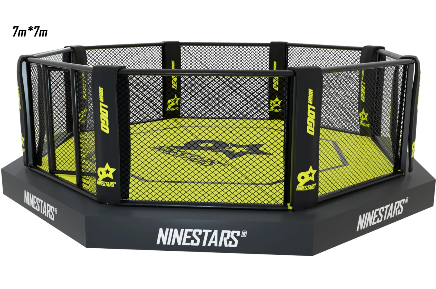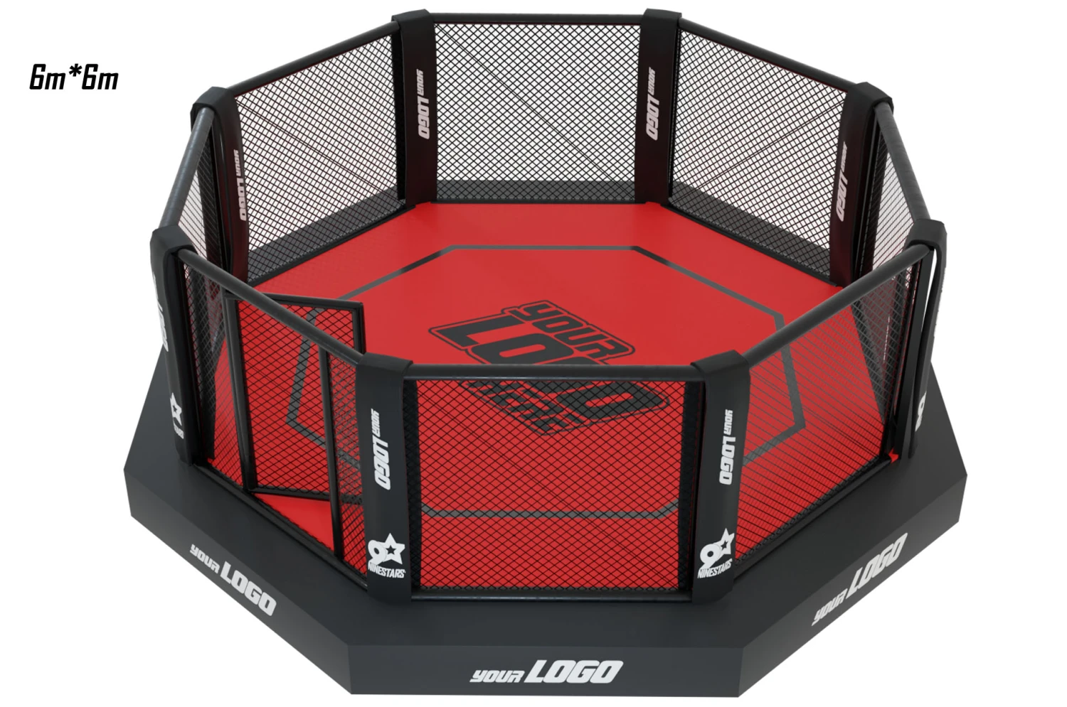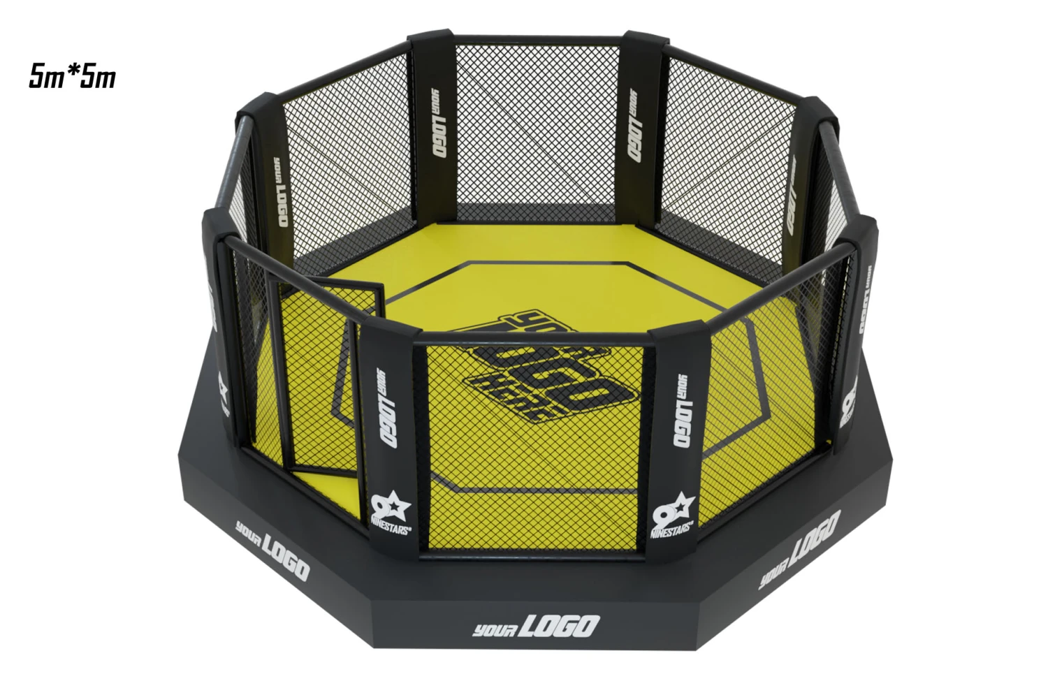 Cage d’entraînement de combat libre MMA, octogonale sur plateforme (structure métallique) avec sidewalk de 50 cm de large environ, de qualité supérieure et conforme aux normes.