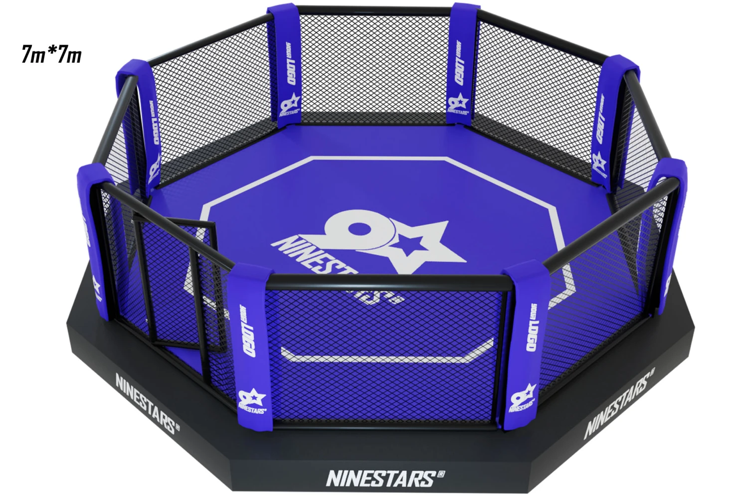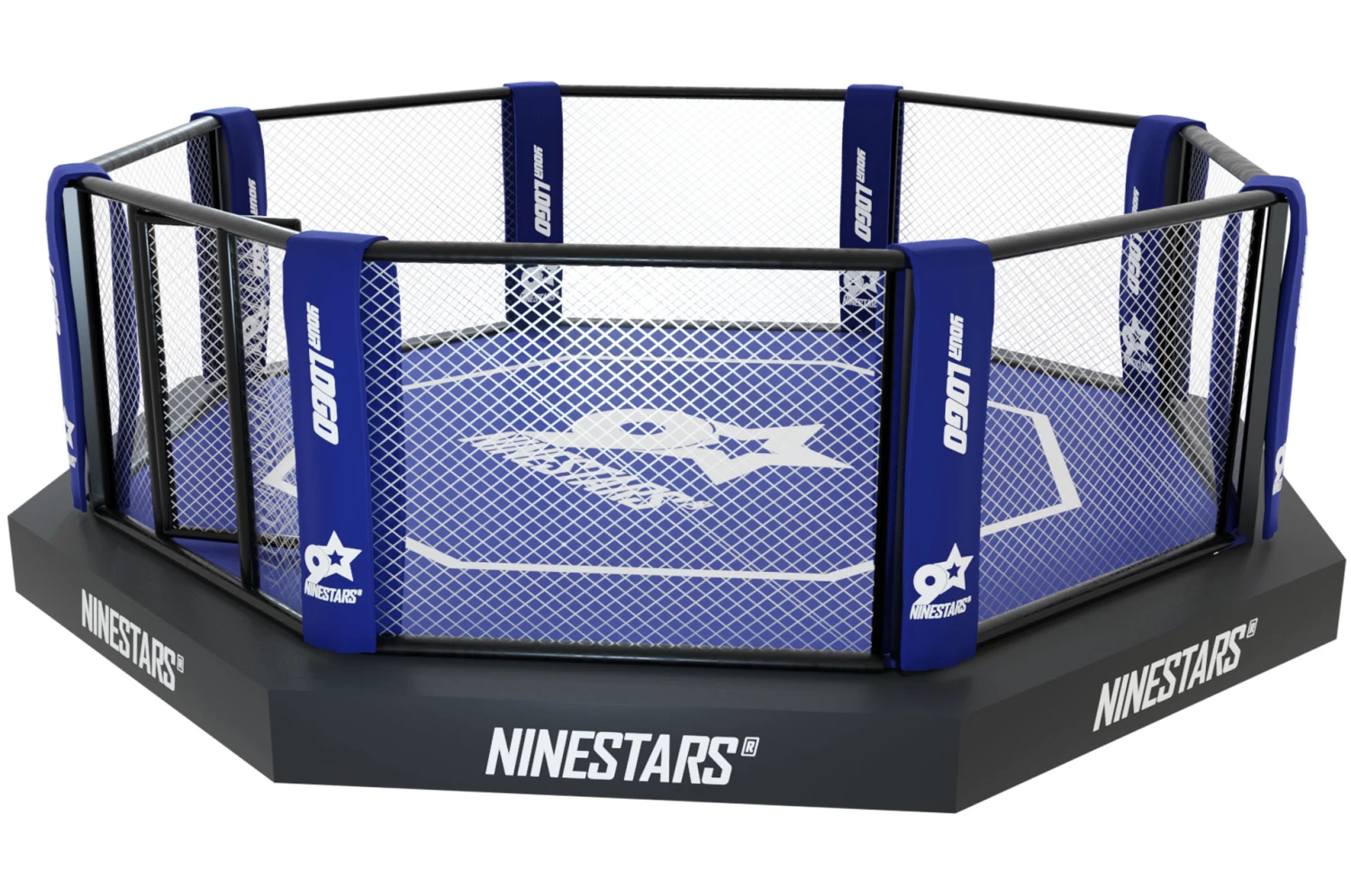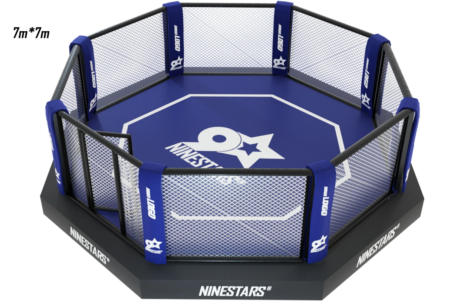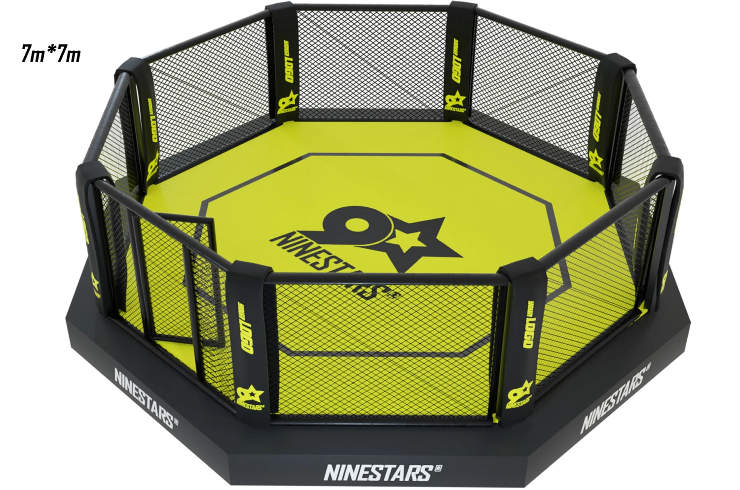 Cage d’entraînement de combat libre MMA, octogonale sur plateforme (structure métallique) avec sidewalk de 50 cm de large environ, de qualité supérieure et conforme aux normes.