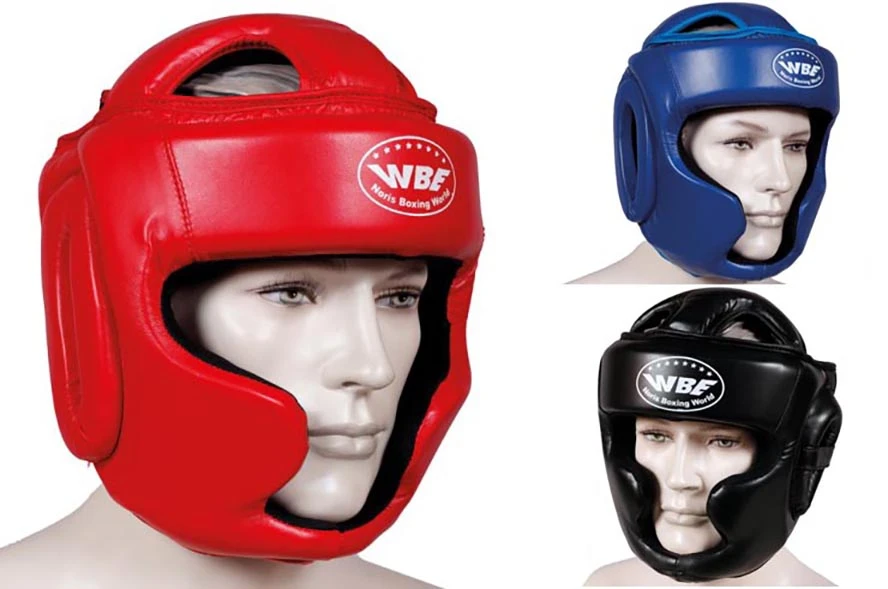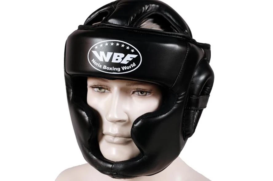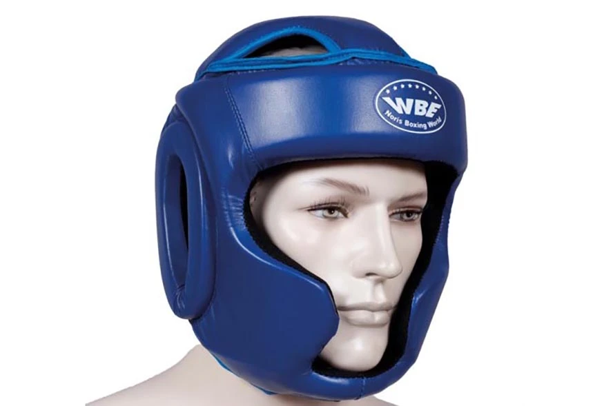 Casque de karaté intégral homologué, avec protections pommettes et protection menton.