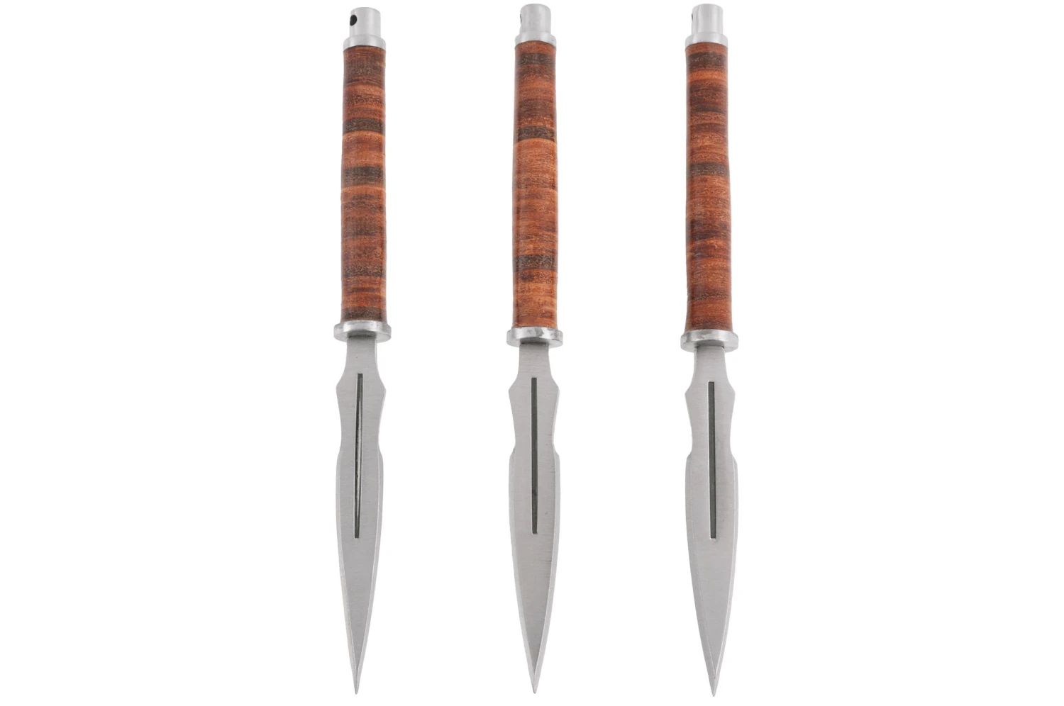 Lot de 3 couteaux de lancer kunai aiguisés avec Lame à double tranchant en acier inoxydable et manches en Cuir empilé.