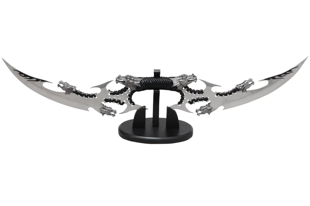 Dague double lame ailes du dragon, Avec support