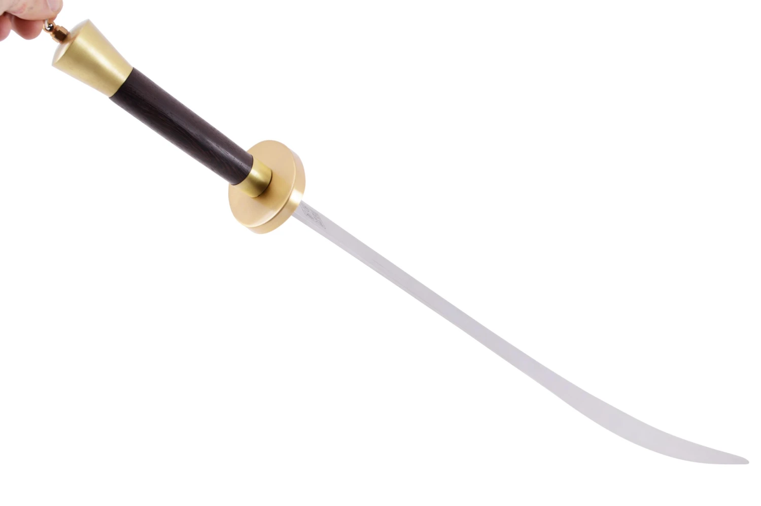 Sabre de type traditionnel, utilisé pour la pratique du Wushu traditionnel. Lame fine semi-flexible en acier Inox de bonne qualité, le sabre est robuste et avec de belles finitions.