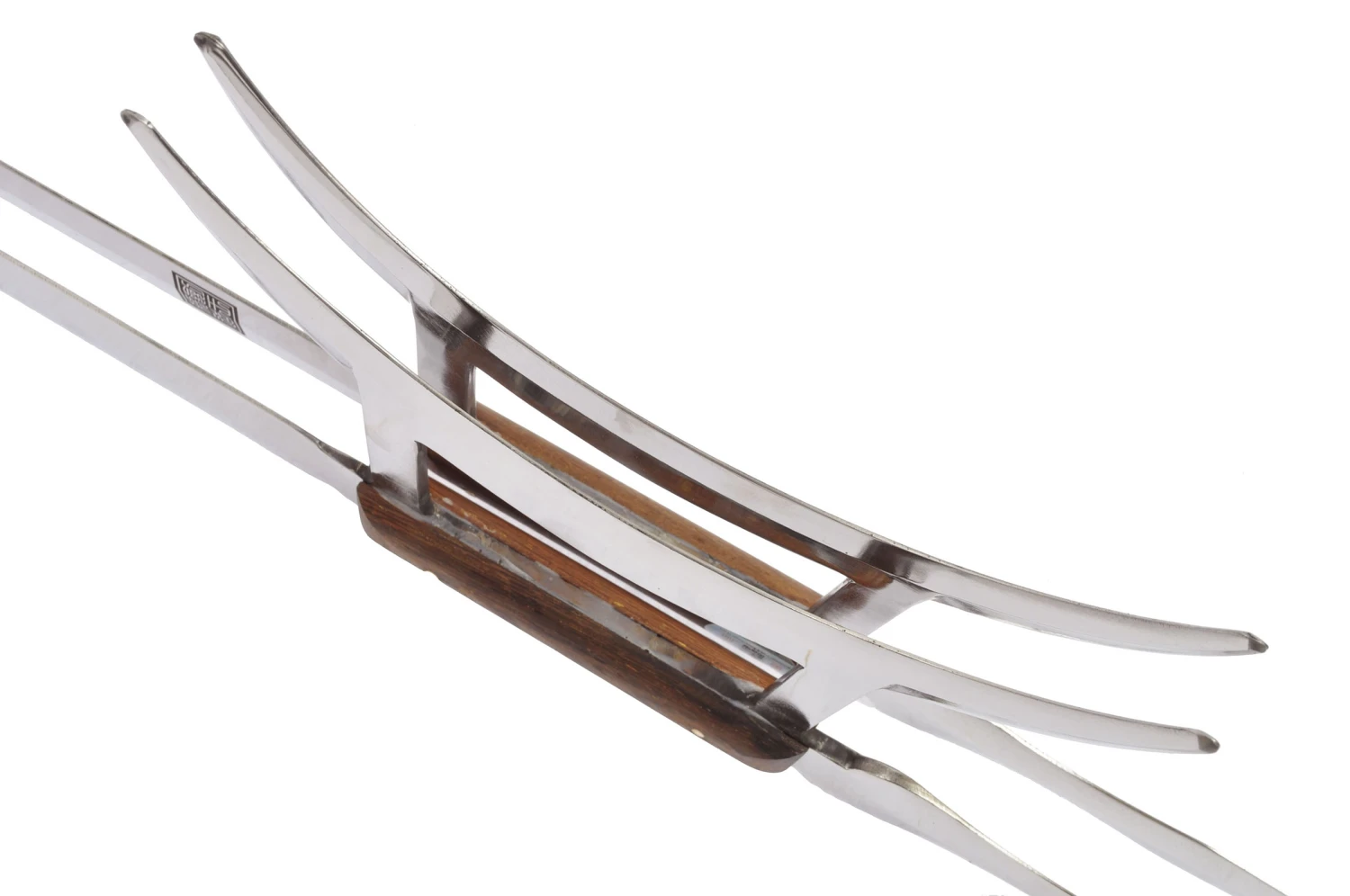 Crochets de très bonne qualité avec de belles finitions, en acier inoxydable, rigides, avec poignées en bois. Le design est particulier, et appelé « griffe de tigre ». Fabriqué par la forge Jian Wang, haut de gamme des produits Kung Fu en Chine.