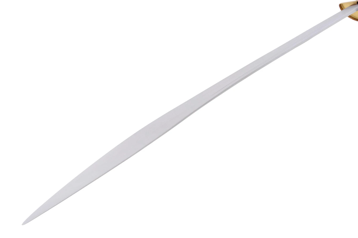 Double sabre style du nord, de type traditionnel avec lame rigide, en acier forgé très robuste. Les poignées et les gardes sont aplaties sur leur face intérieure et sur toute leur longueur. Les deux sabres sont stockées dans un seul fourreau. Cette arme est forgée à Longquan.