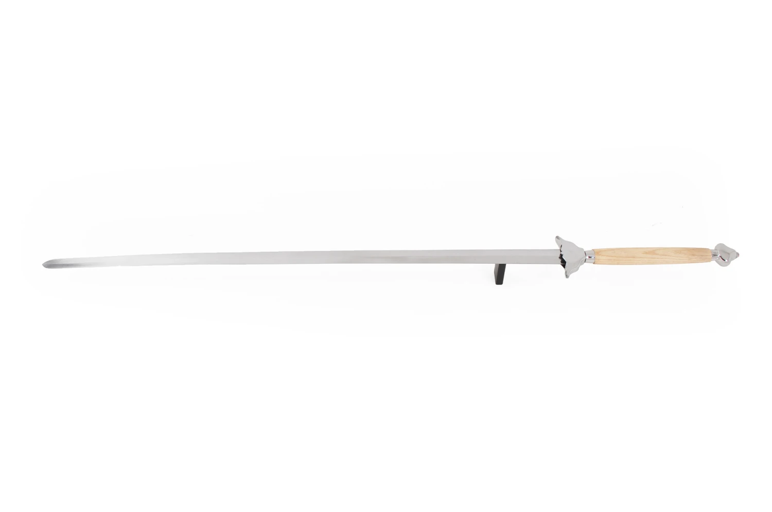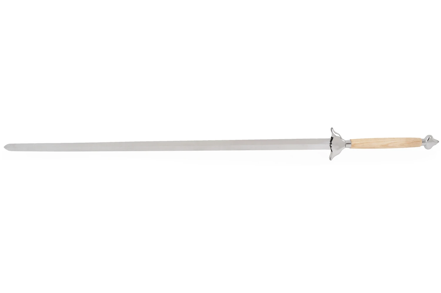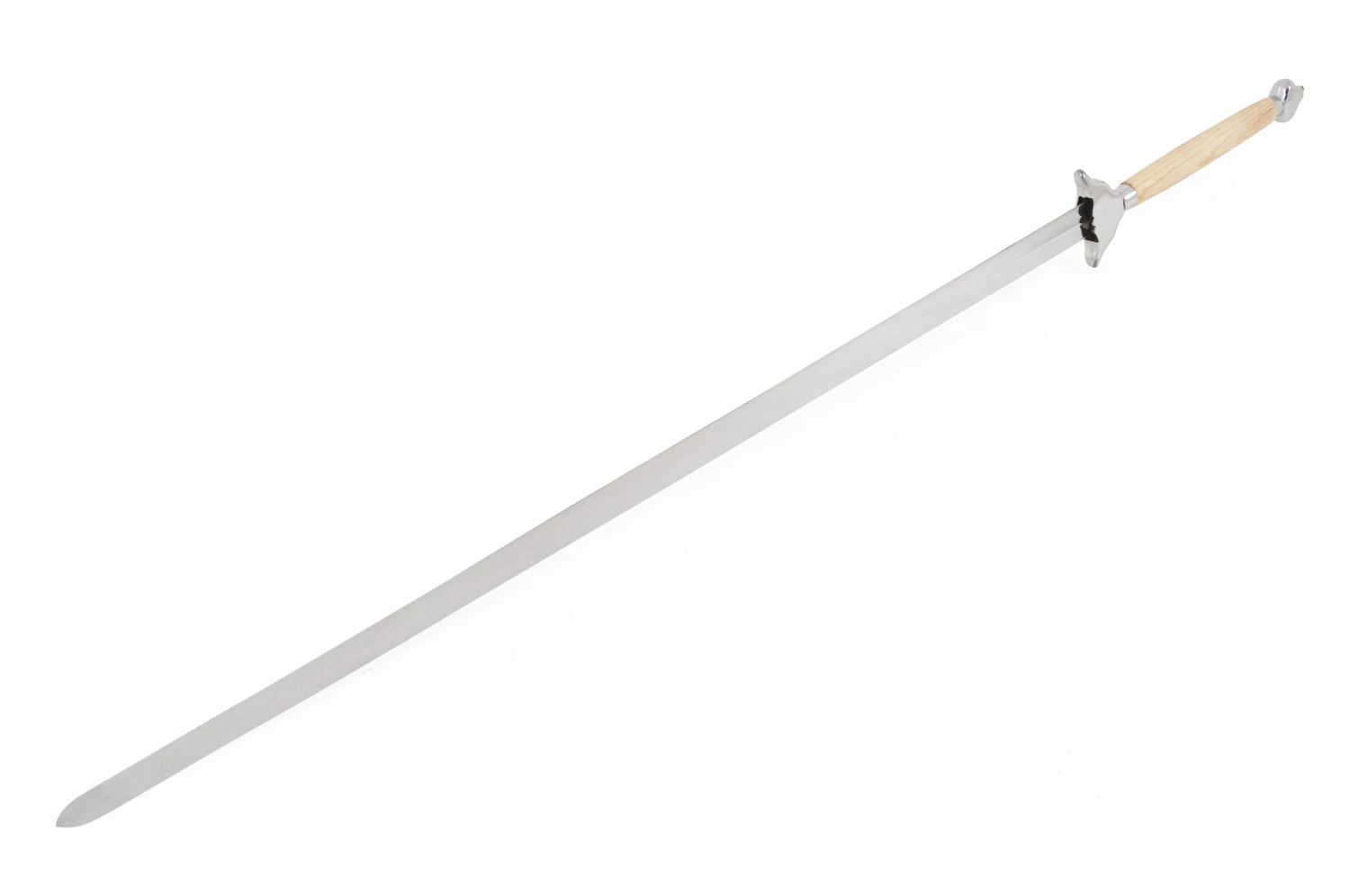 Épée à deux mains, chromée par galvanisation (électrolyse), lame semi rigide.