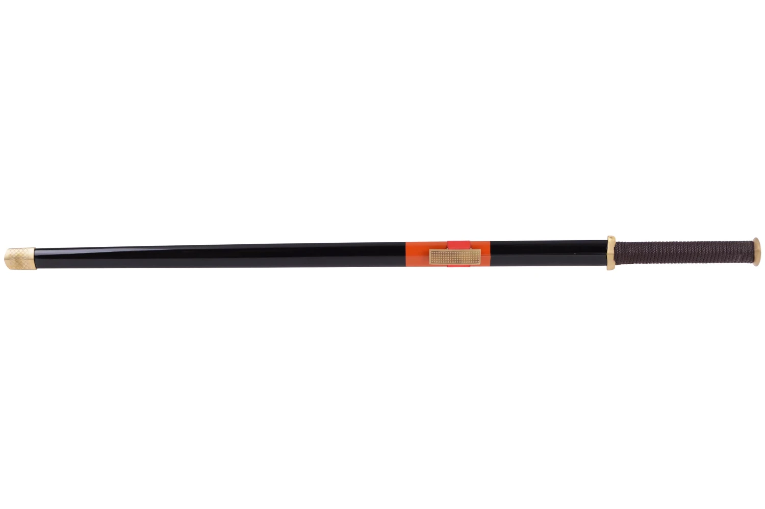 Le magnifique motif du fourreau est composé d’une bande bicolore orange avec un morceau de tissu rouge, tenant l’ornement ressemblant à une boucle de ceinture incurvée, qui sublime l’ensemble et lui donne des aspects de noblesse.
