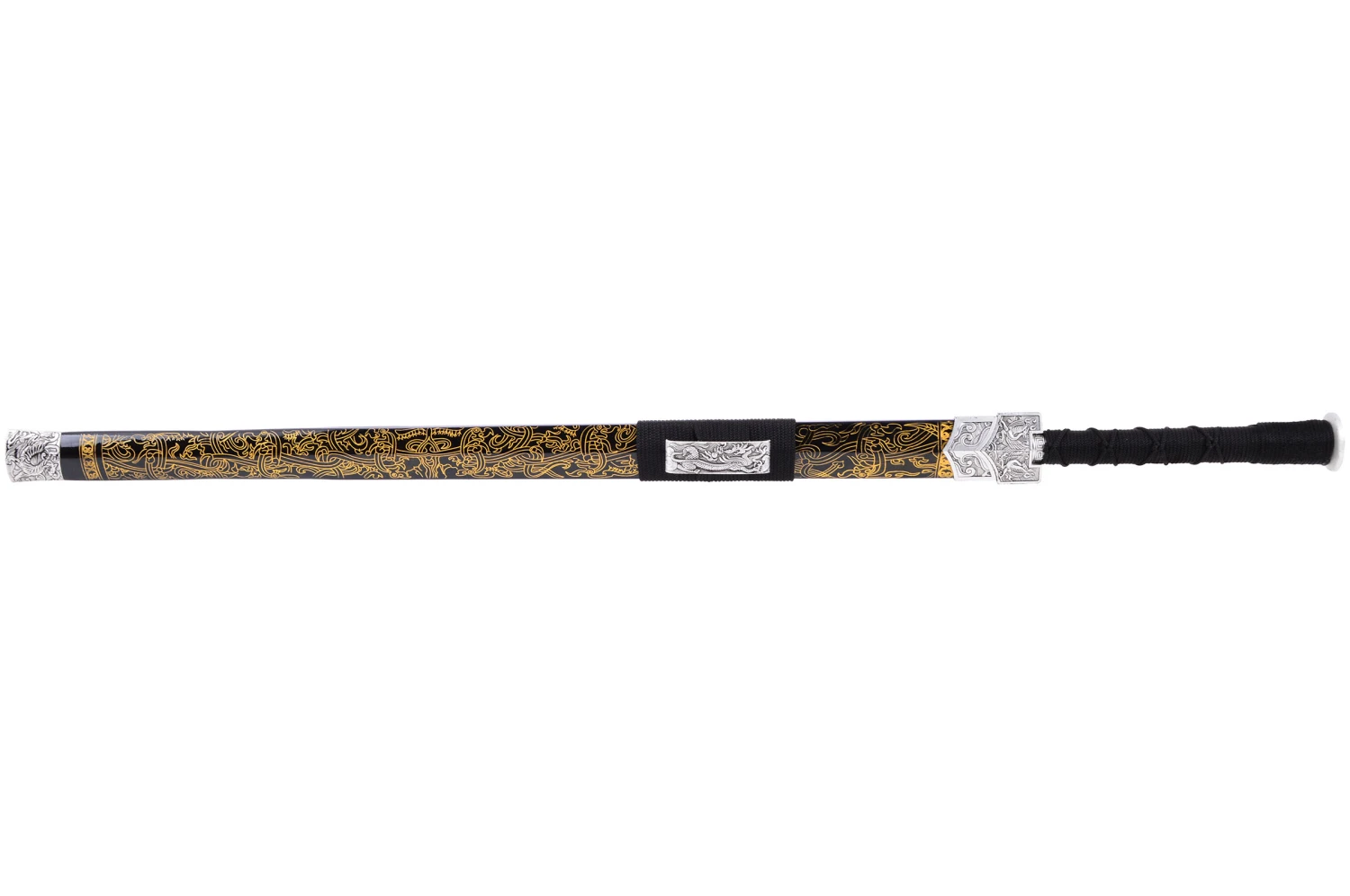 Épée avec un fourreau laqué noir au motif doré.