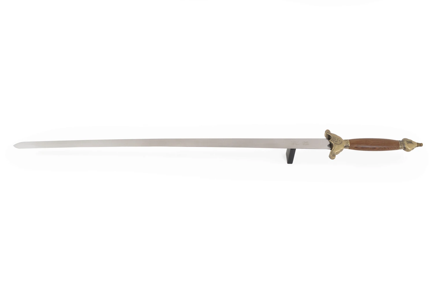 La lame de cette épée Xiang a une section plate (pas d’arête au milieu de la lame). En inox avec un traitement chrome assurant un fini parfait. Le fourreau s’adapte parfaitement à la section de la lame. Une épée de très bonne facture avec de belles finitions et des décorations soignées en alliage type bronze. Excellent rapport qualité prix.