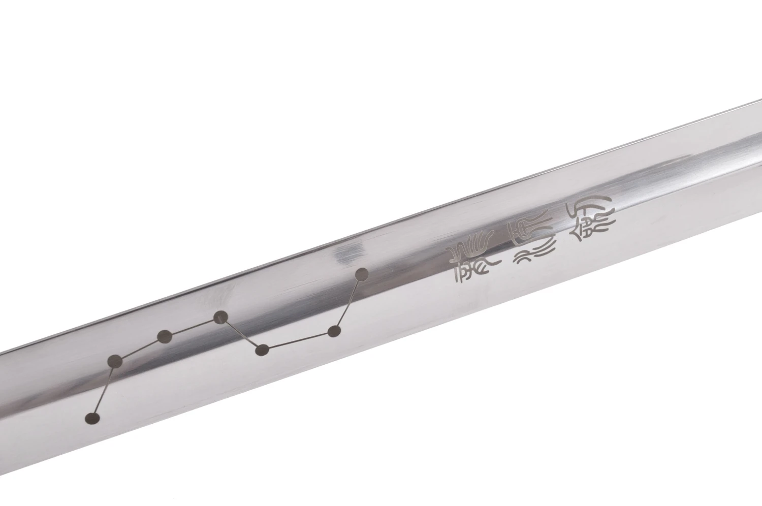 La lame de cette épée YouLong a une section en diamant (avec une arête au milieu de la lame). En inox poli assurant un fini parfait. Le fourreau s’adapte parfaitement à la section de la lame. Une épée de très bonne facture avec de belles finitions et des décorations soignées en alliage type bronze. Excellent rapport qualité prix.
