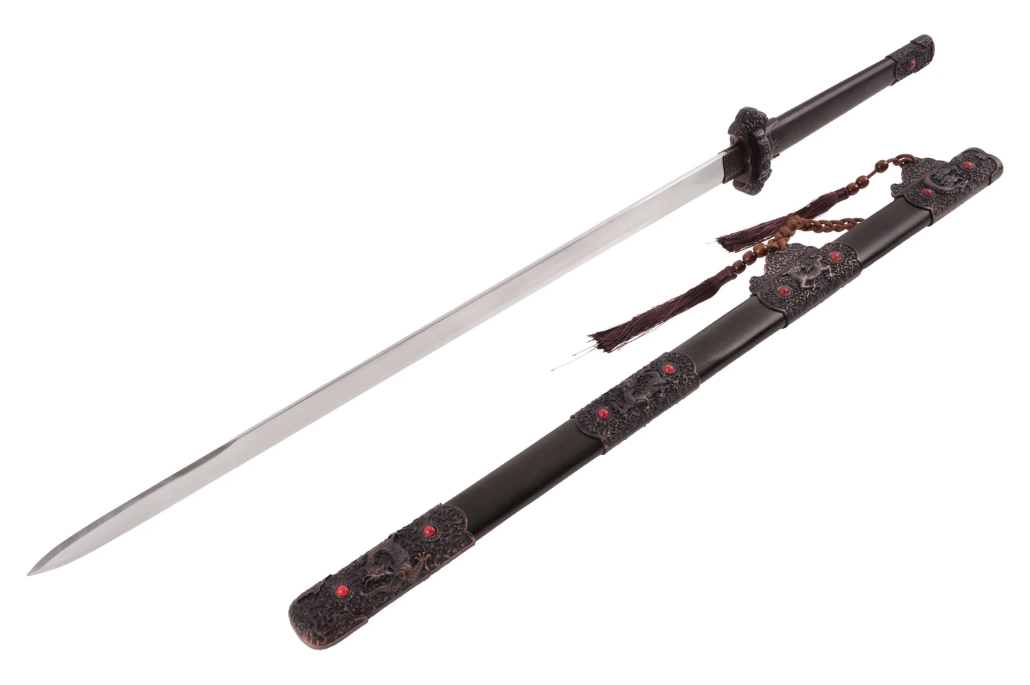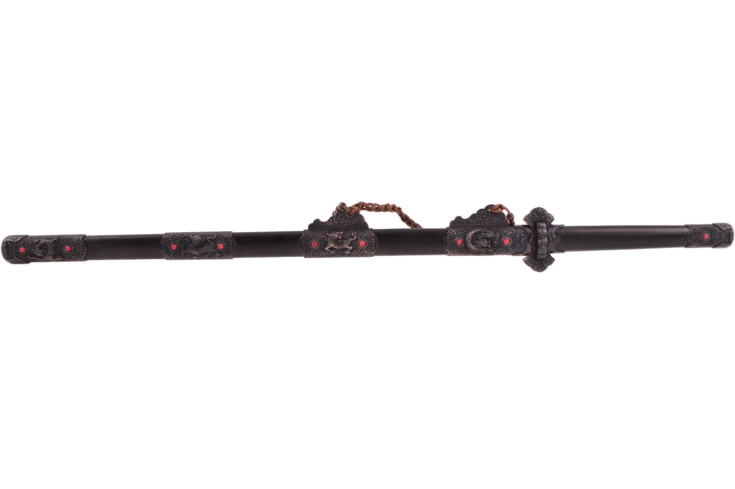 La lame est en double tranchant sur le dernier tiers, le reste de la lame à un revers épais pour assurer une parfaite rigidité et accroitre sa solidité. Cette épée est une réplique d’une lame traditionnelle chinoise, relativement lourde avec un rapport qualité/prix inégalé sur le marché.