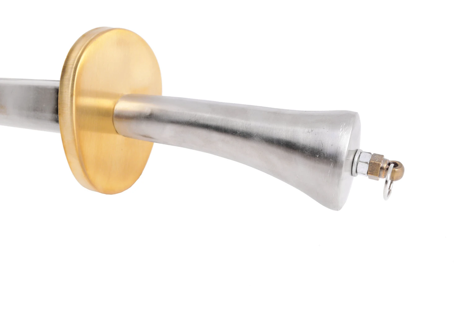 Sa poignée métallique représente une grande amélioration sur le modèle réglementaire précédent avec poignée bois. Cette poignée en métal creux fait office de caisse de résonance pour la lame lors des claquements, et diffuse mieux l’effet sonore que la poignée bois.
