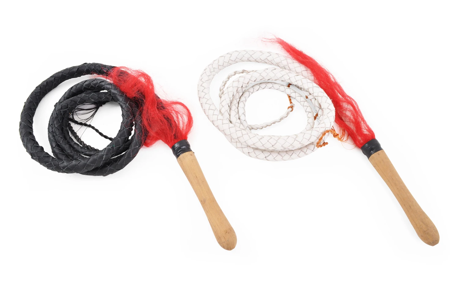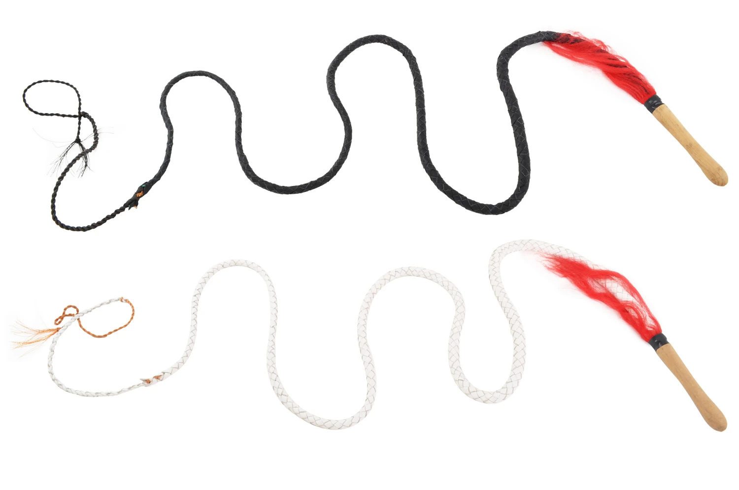 - Le fouet en peau de vache doit d’abord être huilé et entretenu, et la tête du fouet doit être enveloppée avant utilisation !