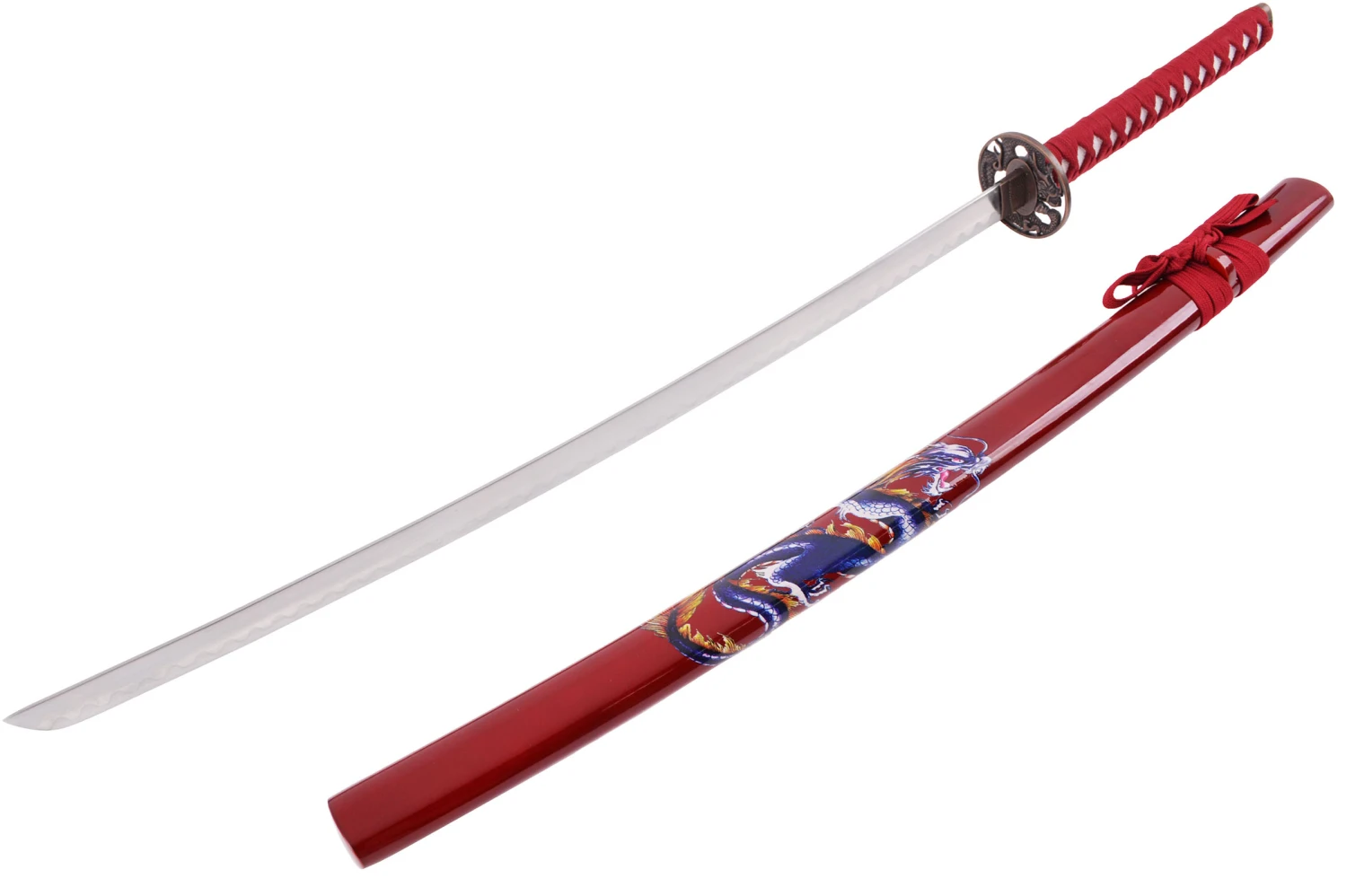 Un Iaïto est une arme d’entraînement japonaise, qui imite le katana et permet l’étude du Iaïdo et du Iaïjutsu. Celui-ci non aiguisée, possède un magnifique manche avec tressage, une garde avec caractères Japonais, et un fourreau (Saya) en bois laqué avec une illustration de Dragon.