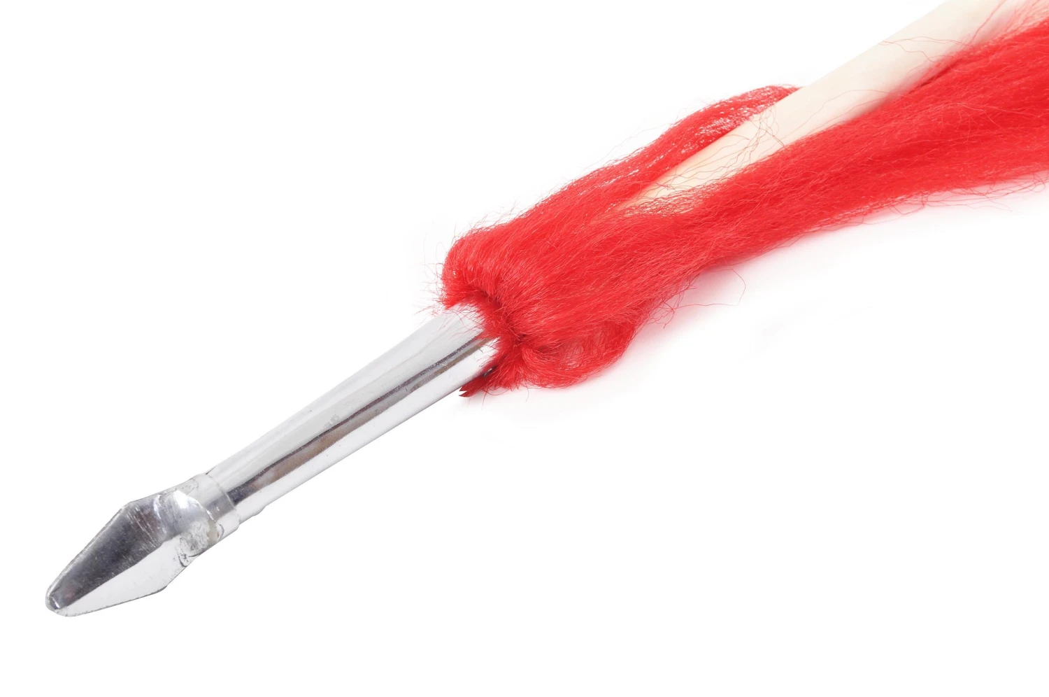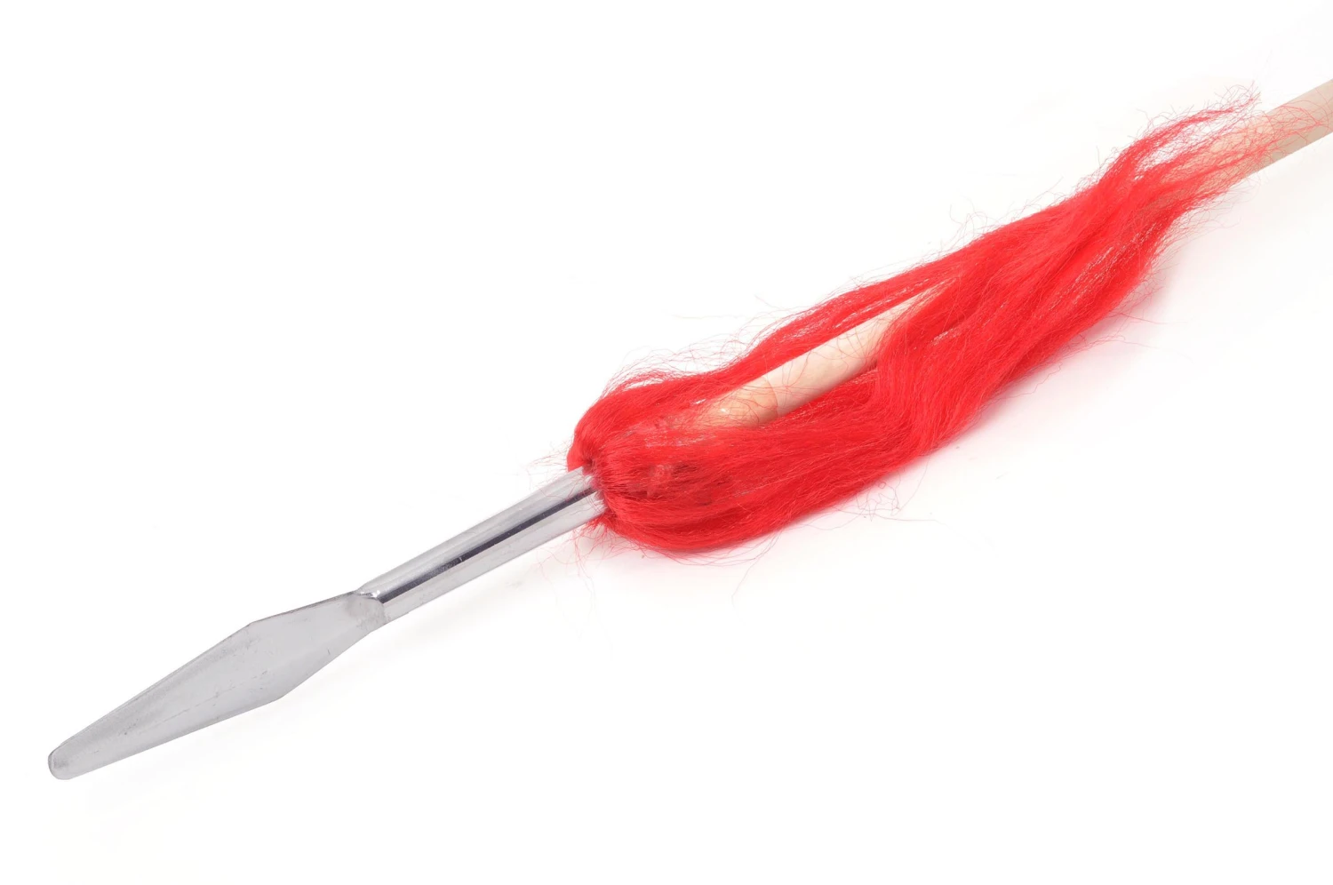 > Bâton en frêne de Chine flexible, disponible en 200 cm ou 220 cm. Longueur totale de la lance incluant la pointe est approximativement 210/220 cm ou 230/240 cm