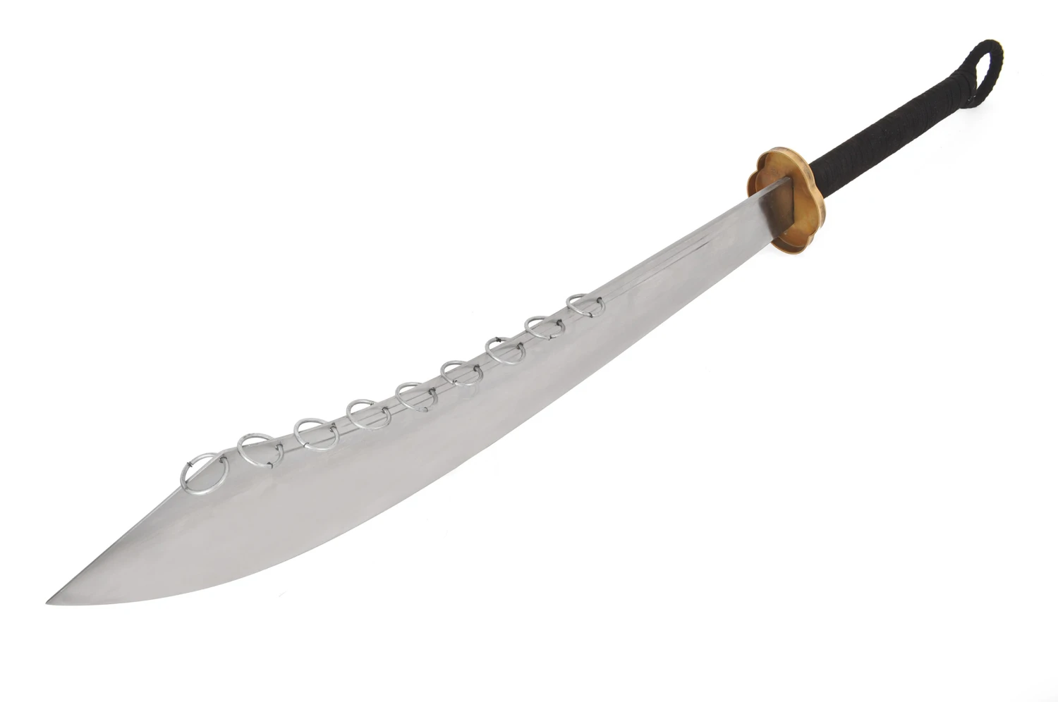 Cette forme de sabre destinée à contrer les armes de l’armée mongole, apparait à la fin de la dynastie des Song [960 -1279], et bientôt fût adoptée par le système de Shaolin. Ces armes arrivent à la Chine du sud avec des moines Shaolin émigrés, entre le 17e au 18e siècle.