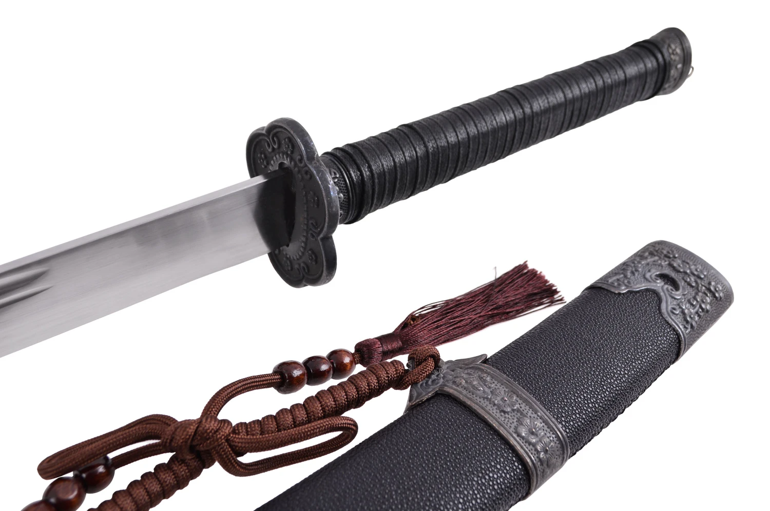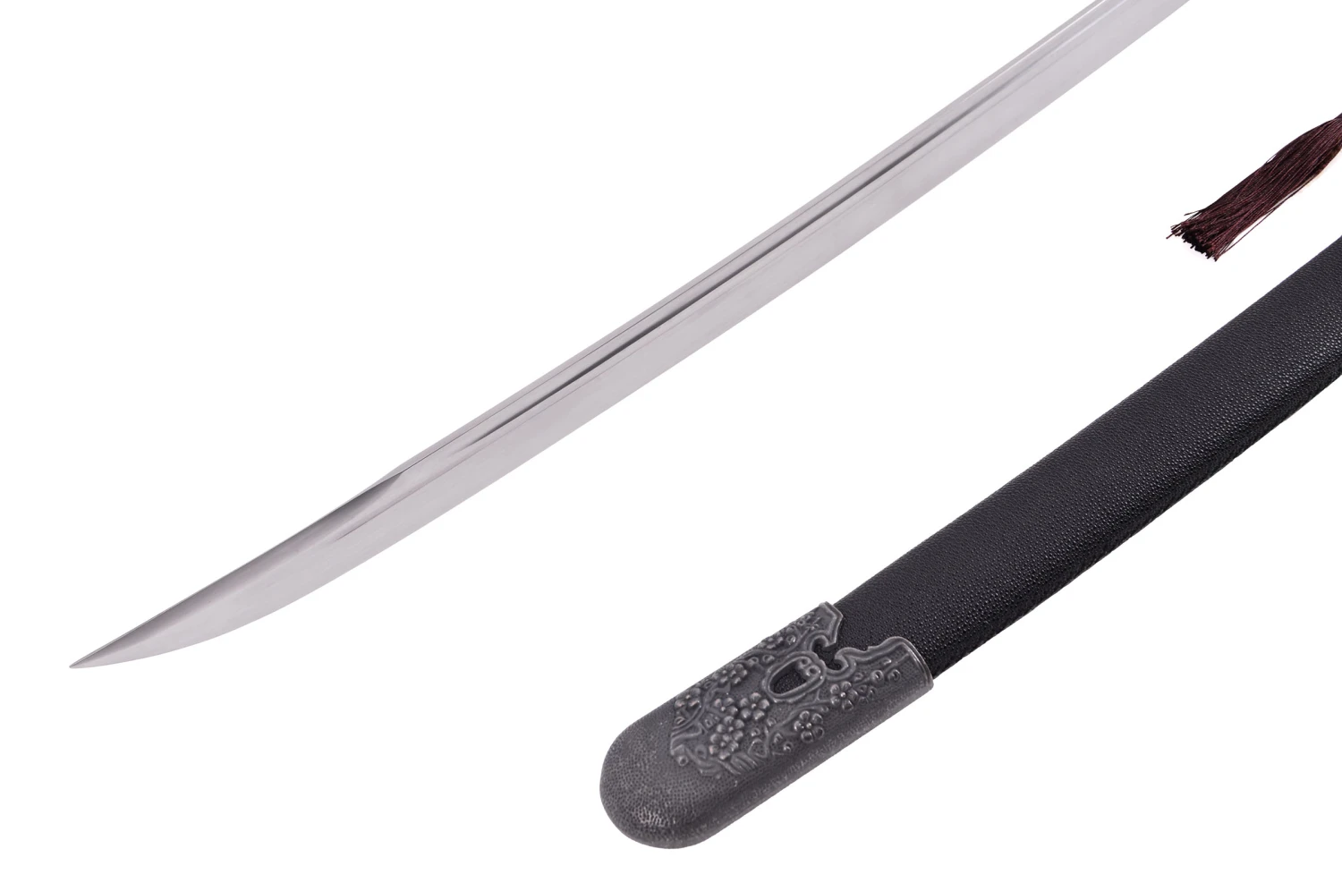 Sabre Qing (sabre de la dynastie Qing) à lame rigide en acier manganèse, de belle finition.