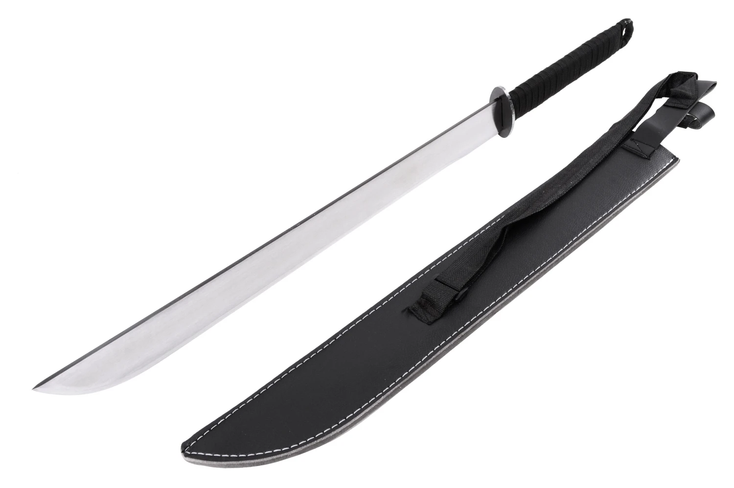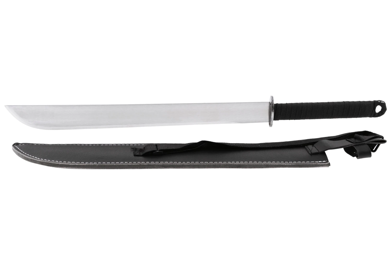 Cette Machette est vendue avec un fourreau en cuir qui possède une bandoulière.