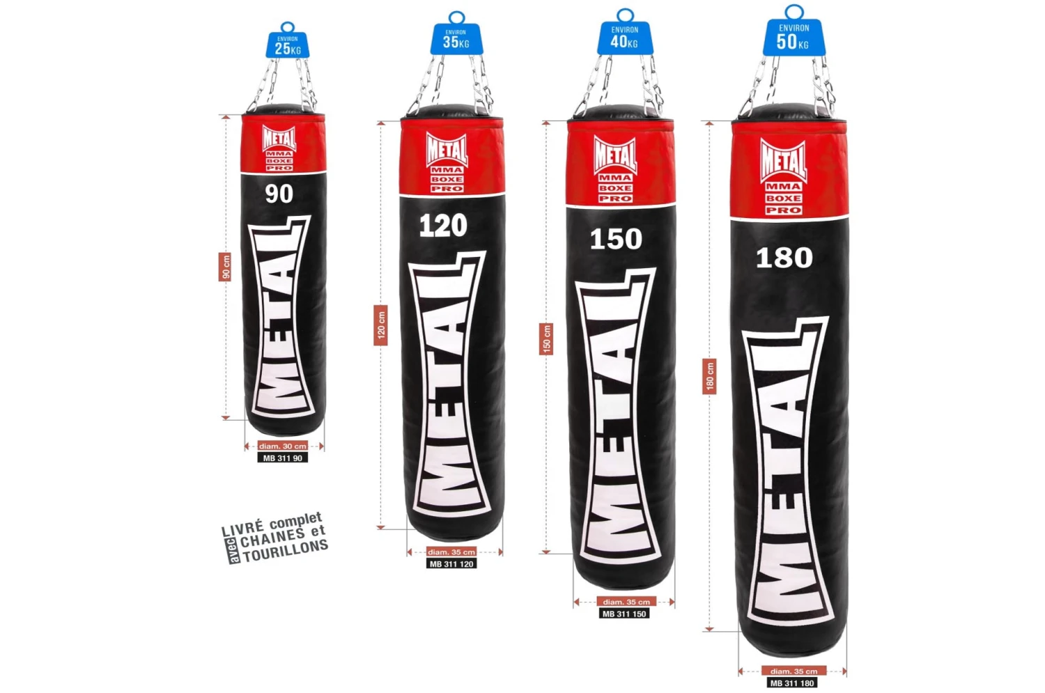 Ce sac de frappe est livré rempli avec des chaines et des tourillons